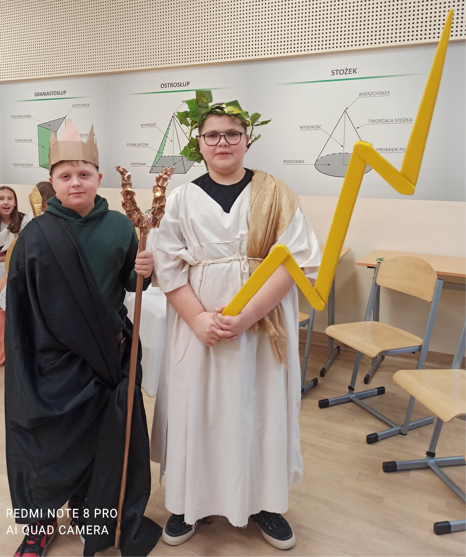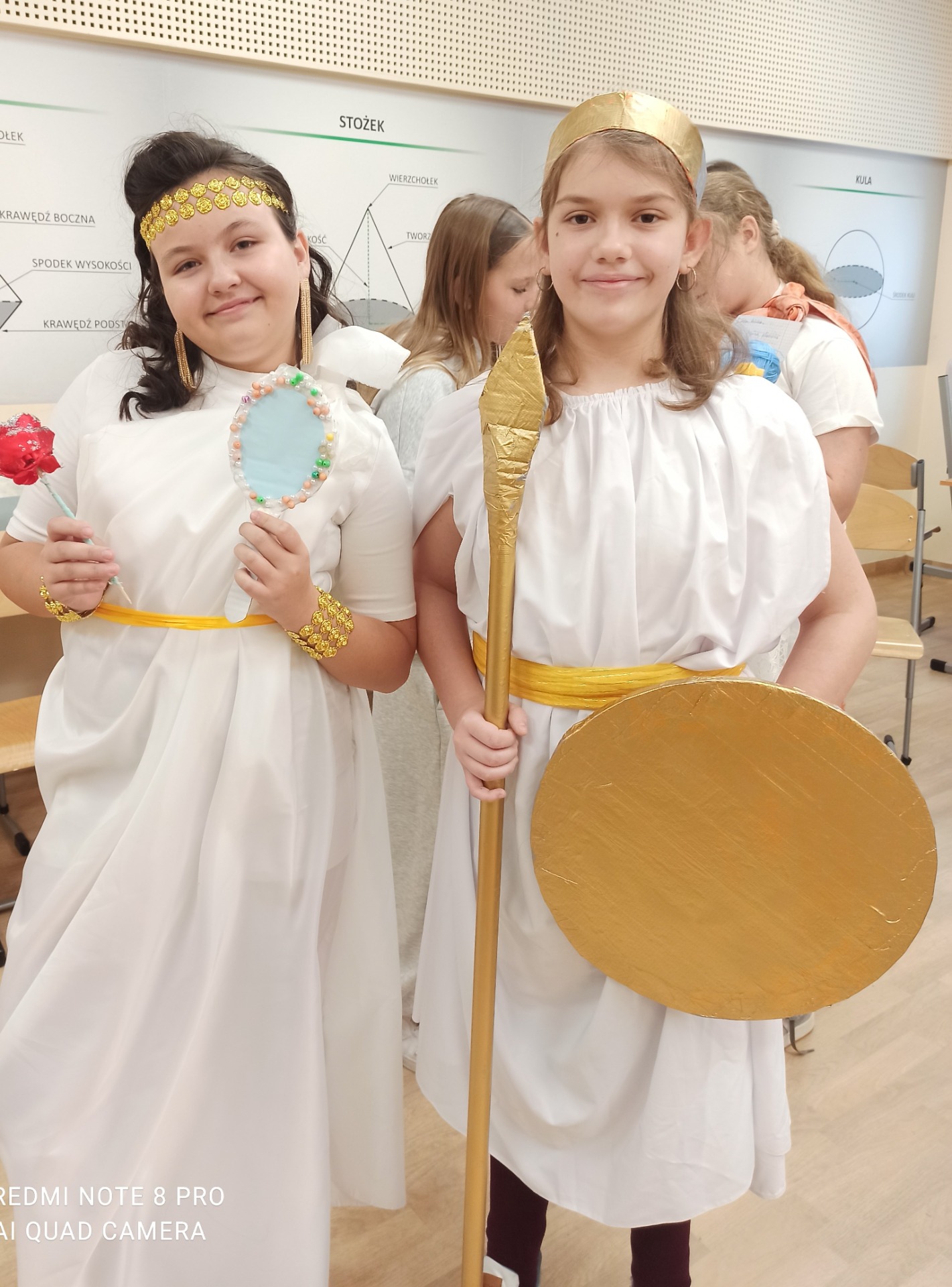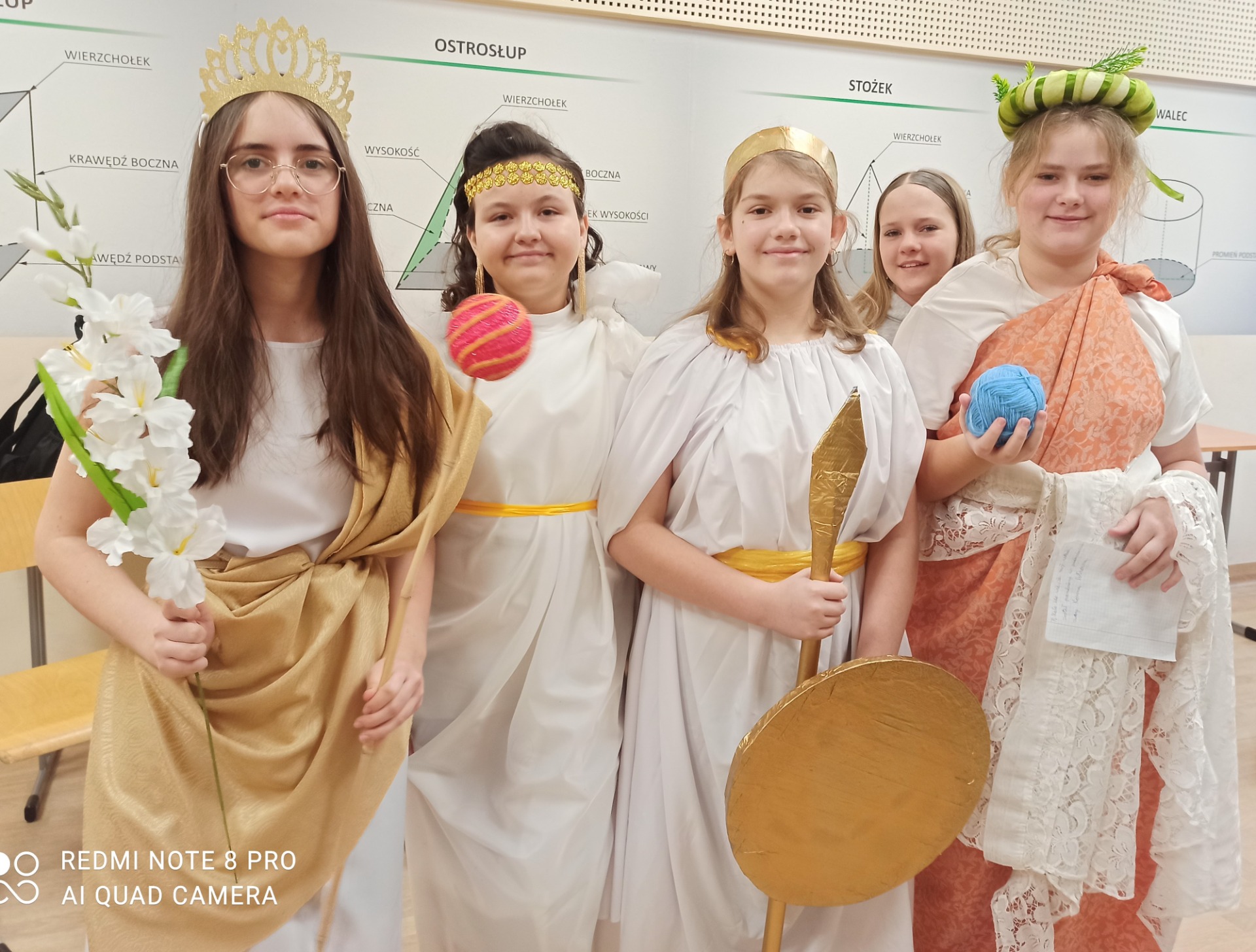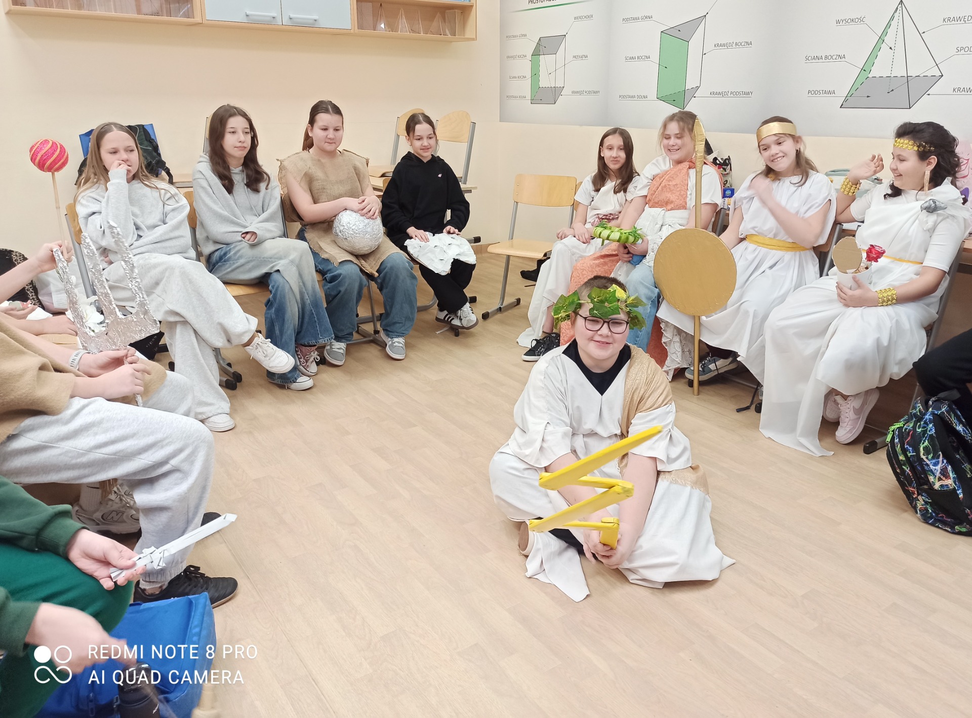 W styczniu szkolna sala na chwilę zamieniła się w mitologiczny Olimp. Uczniowie klasy 5, w ramach powtórzenia wiadomości o mitologii greckiej, wcielili się w postacie bogów i bogiń. Przygotowując się do zajęć, dzieci samodzielnie oraz przy wsparciu rodziców wykonały charakterystyczne atrybuty swoich bohaterów. Podczas lekcji prezentowały wybrane postacie, opowiadały o ich roli w mitologii oraz dzieliły się wyszukanymi ciekawostkami.